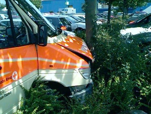 Um eine Kollision mit dem PKW zu vermeiden (hierbei wäre es sicherlich zu einem größeren Personenschaden gekommen), wurde der RTW auf den kleinen Grünstreifen gelenkt, wo er frontal auf einen Baum traf. Bei dem Unfall wurde keine Person zu schaden.