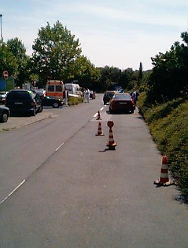 Einer der Unfälle, die der VRM "betreute", ereignete sich am 17.Juli 1999 auf dem Gelände IKEA-Marktes in Hofheim-Wallau. EIn Rettungswagen (RTW) des DRK war mit Sondersignal unterwegs zu einem Notfall. Auf der zweispurigen Straße fuhr der RTW mit Sondersignal (Blaulicht, Martinhorn, Springlicht, Frontblitzer) auf der linken Straßenseite, von der die Parkplätze abgingen, als der auf der rechten Fahrbahn fahrende PKW etwa 10 Meter vor dem RTW von rechts in die Parkstraße einbiegen wollte.